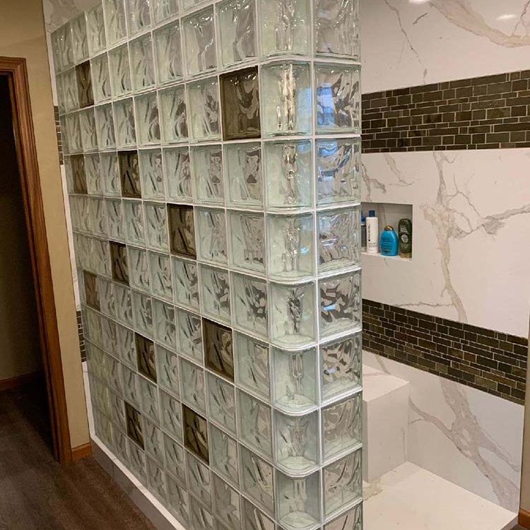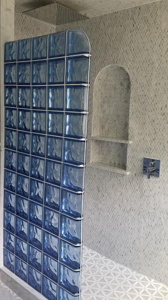 Include color glass blocks in your glass block design to peak interest and add a touch of simple elegance.