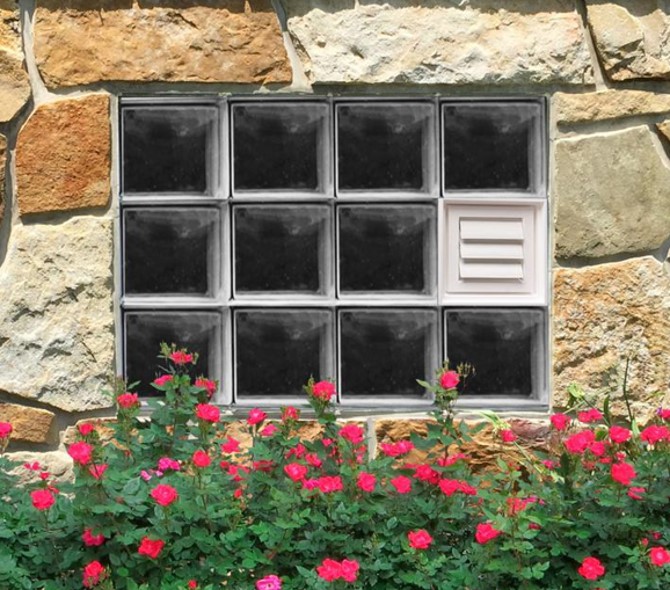 Glass block basement windows are available with an optional fresh air vent. The air vents typically take the place of two or three glass blocks; they are normally centered and come in white vinyl hopper style with a screen on the exterior side.